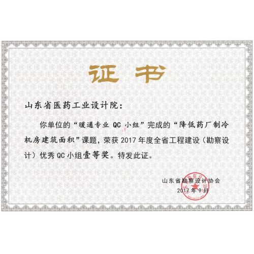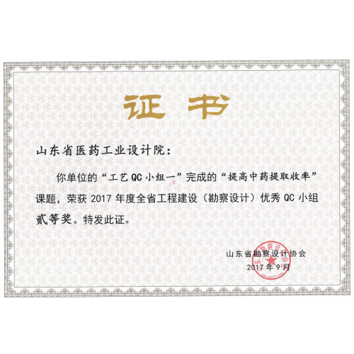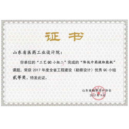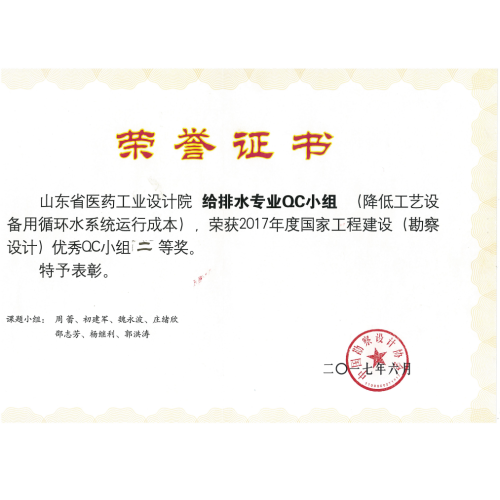 2017年度國家工程建設(勘察設計)優秀QC小組二等獎