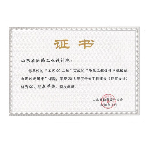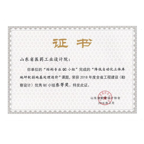 2018年度全省工程建設(勘察設計)優秀QC小組叁等獎