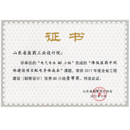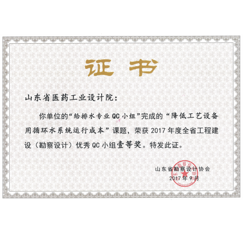 2017年度全省工程建設(勘察設計)優秀QC小組壹等獎