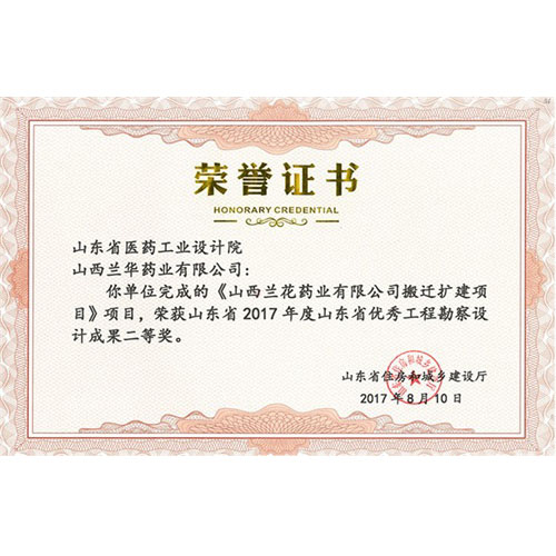 山東省2017年度山東省優秀工程勘察設計成果二等獎