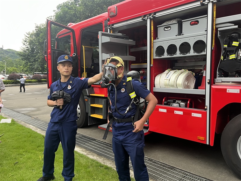 在滅火演練現場,水西消防隊詳細示范講解消防器材的性質結構、適用范圍、使用方法等。隨后,在消防隊員的指導下,大家逐一進行滅火實戰操作、防護面具穿戴體驗,通過親身體驗學習消防器材的正確使用方式。