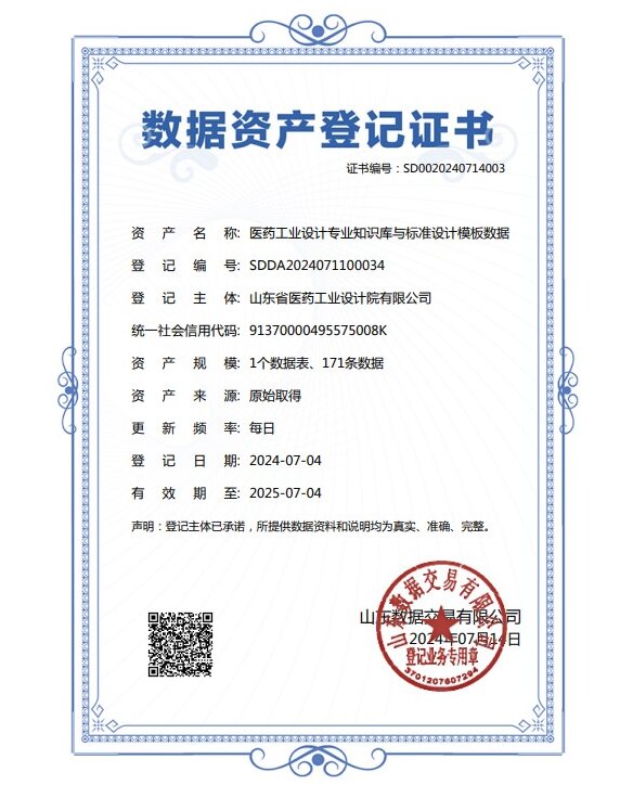 7月14日,省醫(yī)工院的“醫(yī)藥工業(yè)設計專業(yè)知識庫與標準設計模板數(shù)據(jù)”,榮獲山東數(shù)據(jù)交易有限公司頒發(fā)的《數(shù)據(jù)資產(chǎn)登記證書》。