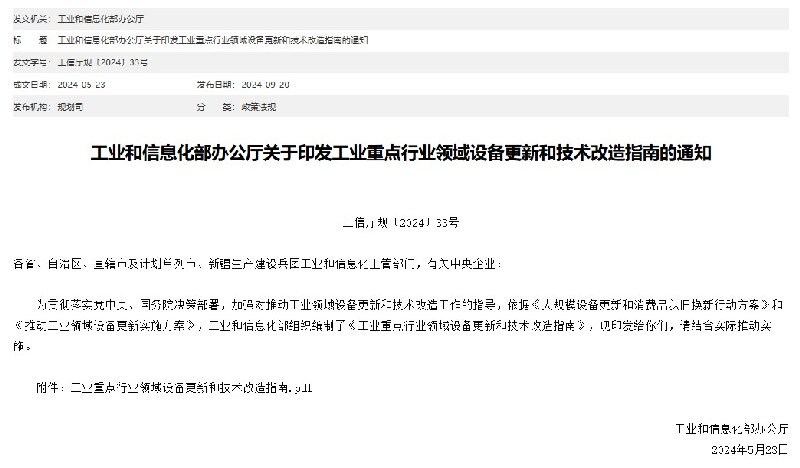該指南的印發,旨在貫徹落實黨中央、國務院的決策部署,加強對工業領域設備更新和技術改造工作的指導,推動工業高質量發展,提升產業競爭力,并優化產業結構。標志著我國工業領域迎來了一次全面而深入的轉型升級浪潮。