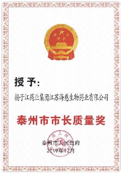 客戶名稱:揚子江藥業集團江蘇海慈生物藥業有限公司